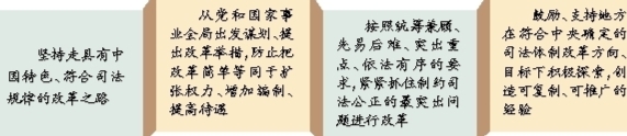 防止把改革简单等同于扩张权力、增加编制、提高待遇,要敢于啃硬骨头,突破利益固化的藩篱,在解决深层次体制机制性问题上取得实质性进展。三要坚持整体推进与重点突破的统一,按照统筹兼顾、先易后难、突出重点、依法有序的要求,紧紧抓住制约司法公正的最突出问题进行改革,确保司法体制和社会体制改革取得实效。四要坚持调动中央与地方两个积极性,鼓励、支持地方在符合中央确定的司法体制改革方向、目标下积极探索,创造可复制、可推广的经验。