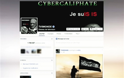 法国国际电视五台台长伊夫·毕戈说,黑客入侵导致这家电视台11个电视频道的信号传输一度中断,官网以及社交媒体“推特”和“脸书”账户开始出现“伊斯兰国”发布的信息。