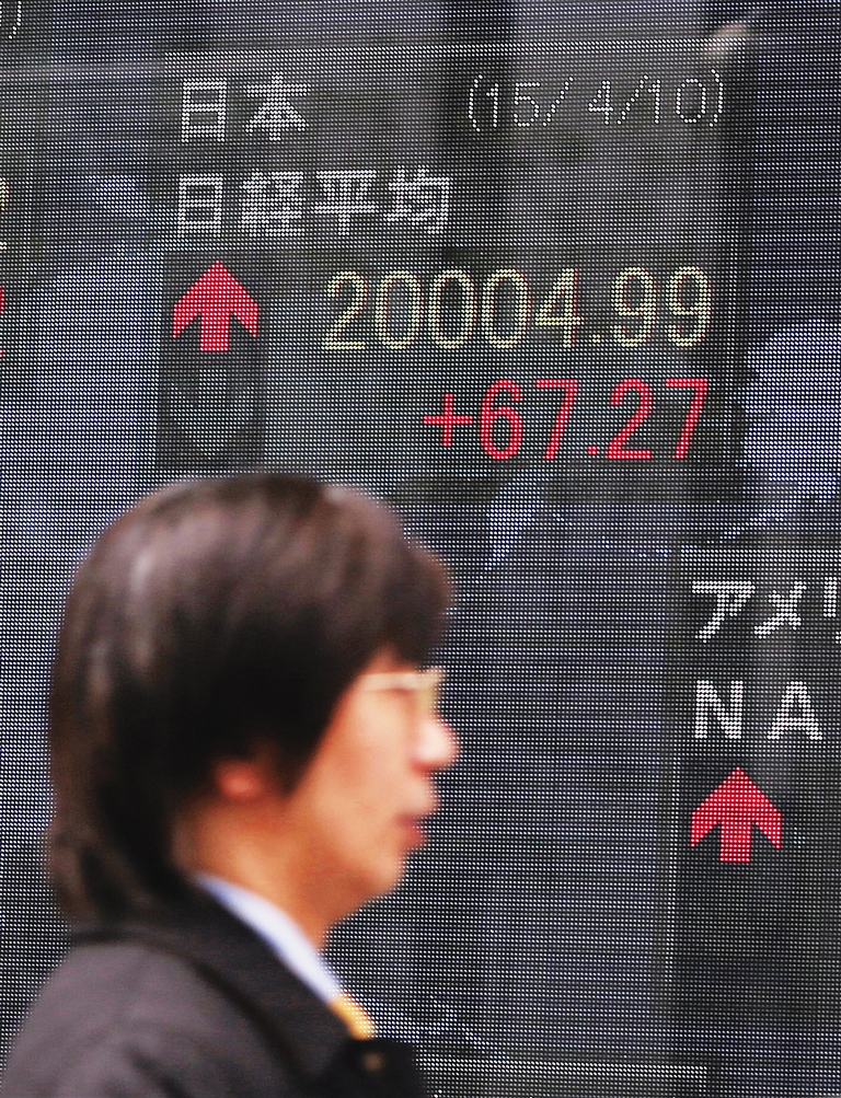 日本东京股市日经225种股票平均价格指数10日盘中短暂突破20000点大关,这是这一指数自2000年4月17日以来首次突破这一关口。 新华社/法新