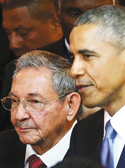奥巴马和劳尔·卡斯特罗上一次握手还是2013年底在南非前总统纳尔逊·曼德拉的葬礼上。劳尔·卡斯特罗当时报以微笑。