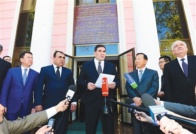 4月10日,在乌兹别克斯坦首都塔什干,出席上海合作组织地区反恐怖机构理事会第二十六次会议的各国代表团团长共同会见记者。 上海合作组织(上合组织)地区反恐怖机构理事会第26次会议10日在乌兹别克斯坦首都塔什干举行。哈萨克斯坦、中国、吉尔吉斯斯坦、俄罗斯、塔吉克斯坦和乌兹别克斯坦代表与会。会议就关于制定打击极端主义法律文件、关于举行打击利用互联网进行恐怖主义活动的联合推演、关于举行上合组织成员国和观察员国打击国际恐怖主义和极端主义第三次研讨会等问题达成了一致意见。 新华社记者 沙达提 摄
