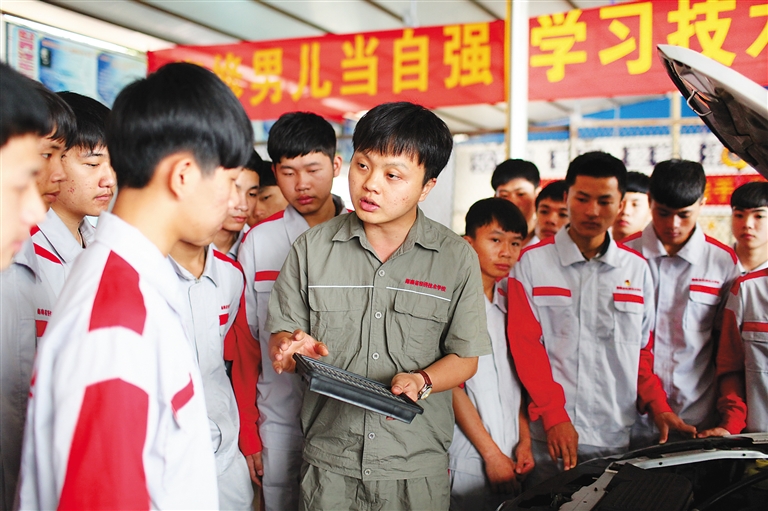 就是在那样的当口,时年26岁的符小泽来到海南省经济技术学校担任汽修专业老师。四年后的今年,符小泽已经担任学校汽车教研室主任,汽修专业在校生由一届一个班40人左右增加至一届7个班400多人,当时1名汽修专业老师增加至现在的11名。