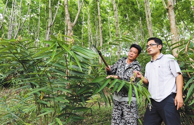打贺村村民张开全,家里有橡胶林40余亩,他也在林间种起了益智。“所有的橡胶林底下都种了,去年收成好,市场行情也不错,益智鲜果一上市就被抢光了,赚了3万多元。”张开全很高兴,今年五六月份又要收获了,希望又有好收成。