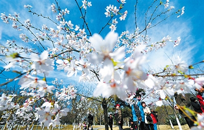 4月初,终抵不过对樱花的思慕,大老远跑到了玉渊潭。每年的3月中旬至4月底,是一年一度的玉渊潭樱花节,今年是第27届,主题是“潭清玉渊秀·樱红满园春”。动身的时候,心里就犯起了嘀咕。清明时节,早樱已过,北京城里触目所及的樱花无不褪去云霞,徒剩还未伸展的枝叶,于姹紫嫣红中赤裸裸立着,失了风姿。可车一过航天桥,眼望着西三环路上那络绎不绝的人流,便稍稍安了心。