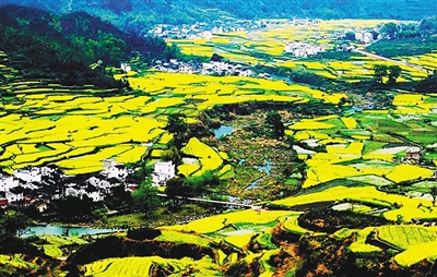 油菜进入开花季节,田间一片金黄,有诗云:“油菜花开满地黄,丛间蝶舞蜜蜂忙;清风吹拂金波涌,飘溢醉人浓郁香。”油菜花竞相怒放,花粉中含有丰富的花蜜,引来彩蝶与蜜蜂飞舞花丛间。浓郁花香令人陶醉,美丽风景让人流连。