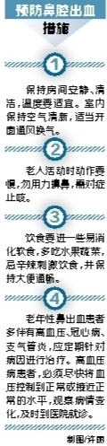 老年人鼻黏膜功能退化,容易出现鼻黏膜干燥,严重可导致干燥性鼻炎、萎缩性鼻炎等,在天气干燥、凉爽的季节,容易导致血管破裂出血。高血压和动脉硬化是中老年人鼻出血的重要原因,血管硬化是其病理基础。血压增高,特别是在便秘、用力过猛或情绪激动时,可使鼻血管破裂,造成鼻出血。另外,打喷嚏、用力咳嗽、猛力的经鼻呼吸或鼻腔按摩,也是鼻出血反复和难以控制的因素。肺气肿、肺源性心脏病等疾病,会导致上腔静脉高压,这些患者的鼻腔及鼻咽静脉常怒张淤血,当患者剧烈咳嗽或其他诱因,血管则可破裂出血,出血部位多位于后鼻孔处的鼻咽静脉从分布区。