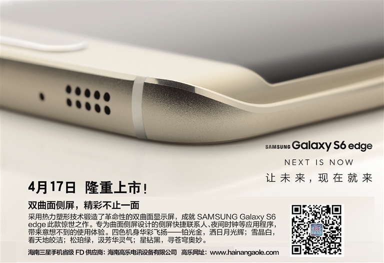据了解,S6公开版为5288元,S6定制版为5088元;S6 Eadg 32G版为6088元,S6 Eadg 64G版为6688元。海南地区95家三星代理商参加了品鉴会,会上还产生了3500台的订货量,其中S6及S6 edge1700台。
