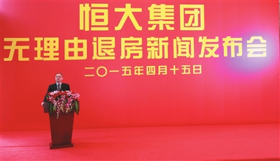 夏海钧:无理由退房是恒大向每一位购房者、向全社会的郑重承诺,是为了践行恒大民生地产的经营理念,体现恒大诚信和恒大住宅品质,让买恒大房的老百姓买得放心、买得称心、买得高兴。