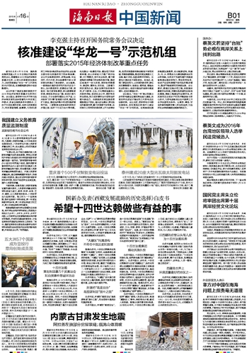 海南日报 中国新闻 009 2015-04-161 2015年04月16日 星期四