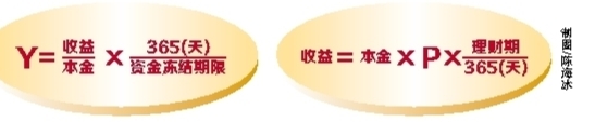 例如,某银行发行的一款理财产品,期限为45天,如果投资者购买了100000元,到期后投资者共收到本息100500元,则该理财产品年收益率=(100500÷100000-1)×365÷45=4.05%。(金荣)