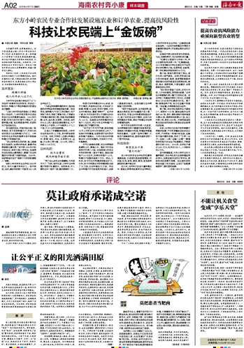 海南日报 海南农村奔小康样本调查 002 2015-04-171 2015年04月17日 星期五