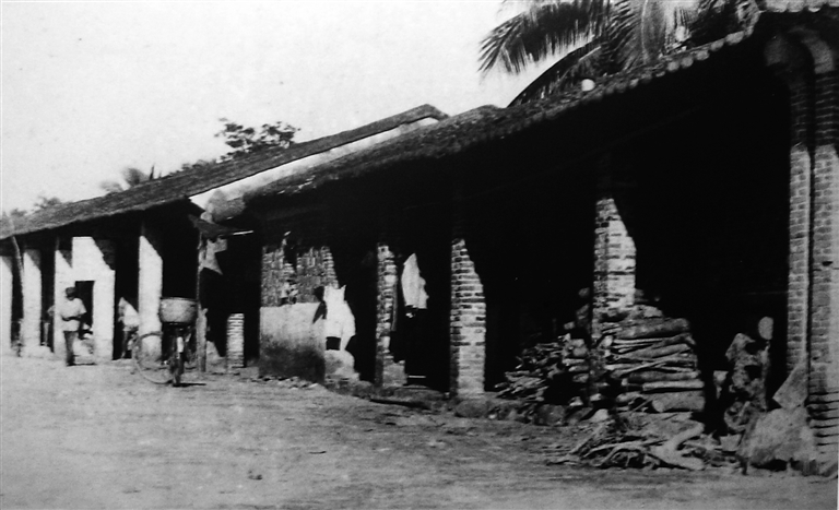 重游琼海市嘉积镇椰子寨战斗遗址,曲尺形的骑楼老街并不长,却十分安静整洁。