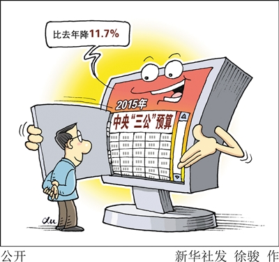 中国财政部17日公开的今年中央本级“三公”经费预算安排情况显示,2015年中央本级“三公”经费预算63.16亿元,这一数据比去年年初预算减少8.35亿元,下降11.7%,其中,因公出国(境)费19.38亿元,公车改革带来公车经费下降16.2%,公务用车购置及运行费34.59亿元(其中,公务用车购置费0.93亿元,公务用车运行费33.66亿元),公务接待费9.19亿元。新华社发