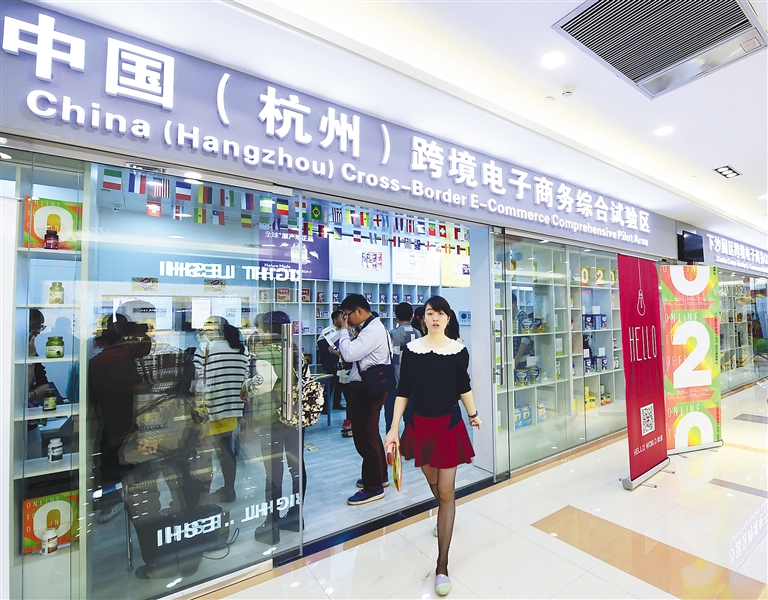4月17日,杭州下沙首家跨境电子商务体验中心开张。 当日,杭州下沙首家跨境电子商务体验中心开张,消费者只需用手机扫描店内货架上展陈的境外商品二维码标签,就能直接下单跨境网购。据悉,该体验中心是目前杭州下沙首家由政府主导、突出公共服务功能的跨境商品体验中心,在相关监管部门监督指导下,引导消费者进行理性跨境采买的实物展示平台。该中心目前可提供母婴、食品、保健品、化妆品、小家电、服饰和居家等类别的3000多种海关备案商品,可一站式实现进口商品实体网购。 新华社发(李忠 摄)