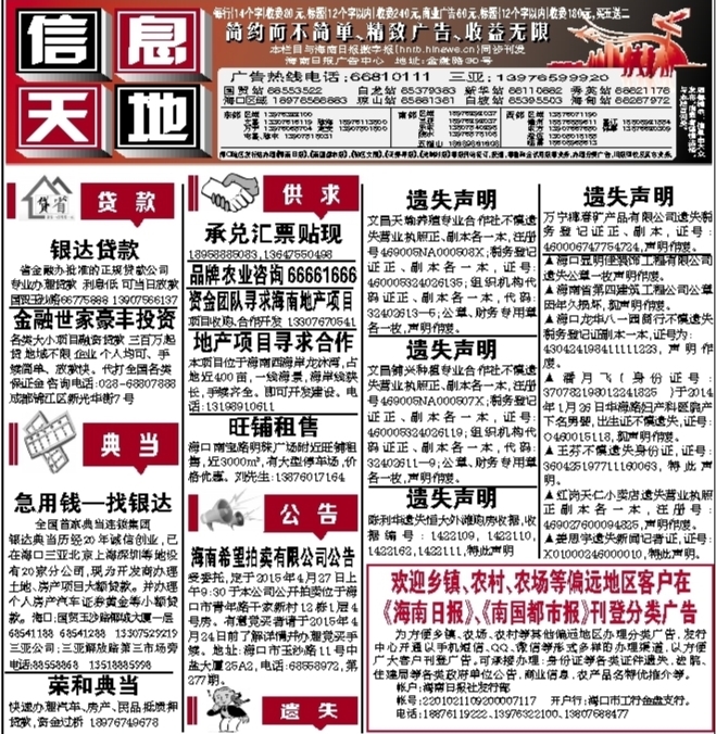 海南省二○一五年第三期公开发放有偿优选小汽车号牌号码公告