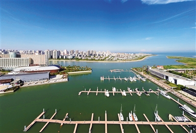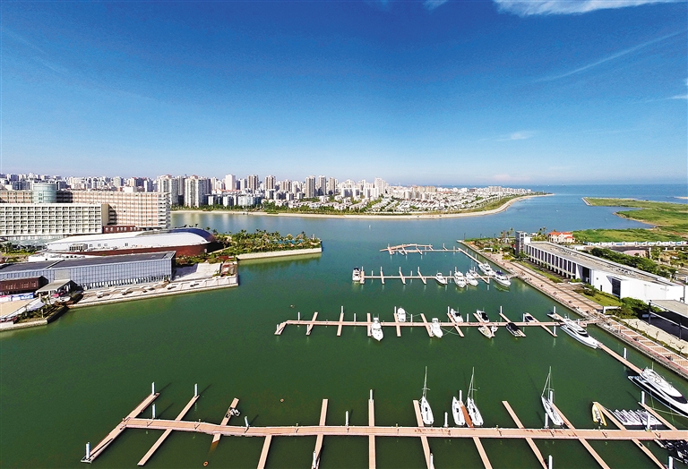 记者从海南海事局获悉,截至目前,海南辖区游艇、帆船等休闲类船舶保有量已达到339艘,数量呈逐年增长的态势。近年来,海南游艇产业从无到有,从少到多,发展迅速。海口、三亚相继推出了海上游艇旅游观光线路。图为航拍的海口新埠岛游艇会。本报记者 宋国强 摄