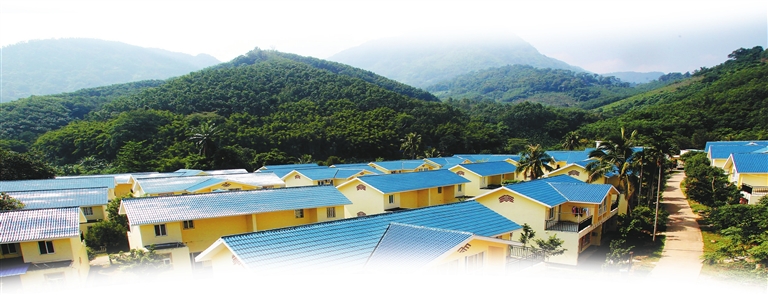 18栋颇具黎族特色的独栋别墅整齐排列,外部装修风格一致,门前小桥流水,村民们悠然自得地在家门前喝茶、聊天,脖子上挂着相机的游客在村里转悠。这是记者日前在白沙细水乡老周三村见到的景象。