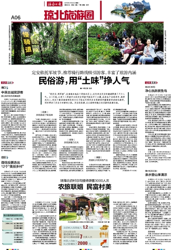 定安历史底蕴深厚,旅游更应打好“文化牌”。众所周知,民俗产业是文化和旅游产业的重要支撑,而民俗旅游也是推进旅游文化产业发展的助推器。“发展定安民俗旅游的关键是要对民俗进行很好的挖掘、开发、利用。”徐吉坦言。