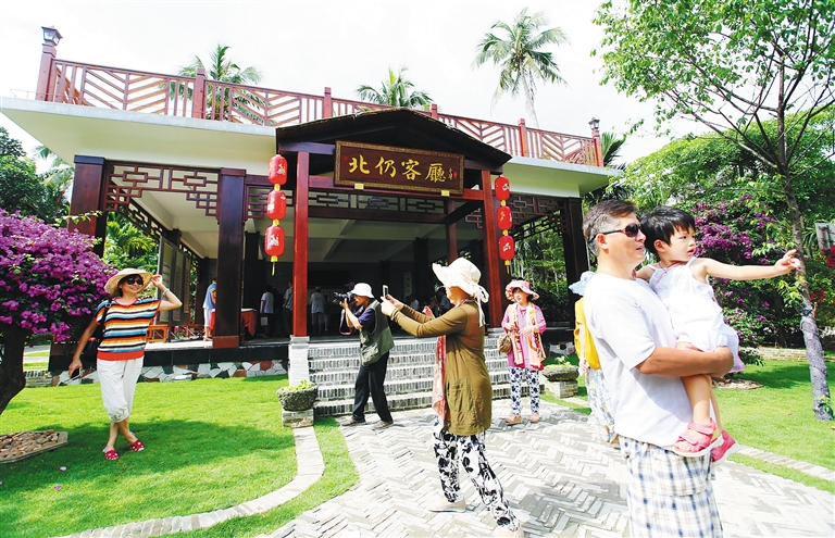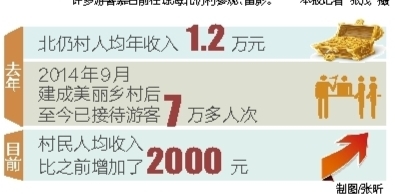 北仍村党支部书记李昭良介绍,北仍村位于琼海市三大组团之一的官塘开发区,占地585亩。去年5月开始建设美丽乡村,完成了8公里长的环村绿道、920米的巷道硬板化,形成了四通八达的生活通道和骑行健身、休闲观光路网。村里还建起了北仍客厅、北仍书屋、庭院时光、草寮咖啡屋等一系列供游客休闲娱乐的小景点。自2014年9月美丽乡村打造好以来,已接待游客7万多人次。去年,北仍村人均年收入1.2万元,启动美丽乡村景点建设后的半年时间,村民人均收入比之前增加了2000元。