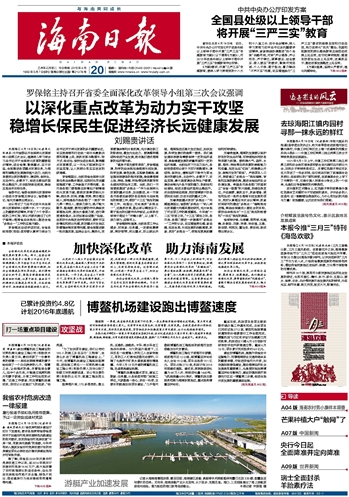 | 海南日报 头版 001 2015-04-201 2015年04月20日 星期一 |
