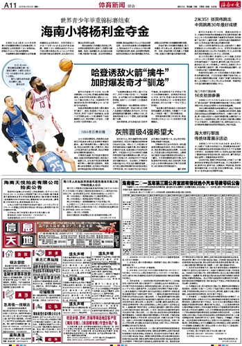 | 海南日报 体育新闻综合 011 2015-04-201 2015年04月20日 星期一 |