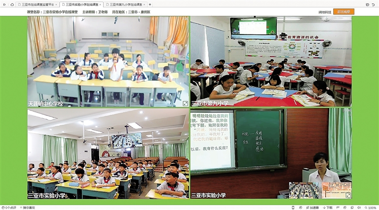 据了解,目前,三亚市第九小学等20所学校之间已经设立同步课堂环境。通过名校和乡村班级结队方式,让乡村课堂同步名校课堂学习进度,真正获取同等优质教育资源。