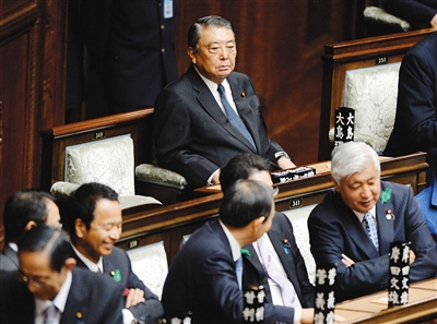 4月21日,在日本东京的国会众议院,日本自民党前副总裁、众议院预算委员会委员长大岛理森(后)出席会议。 日本国会众议院21下午举行全体会议,批准众议院议长町村信孝的辞呈,选出大岛理森担任新议长。 新华社记者马平摄