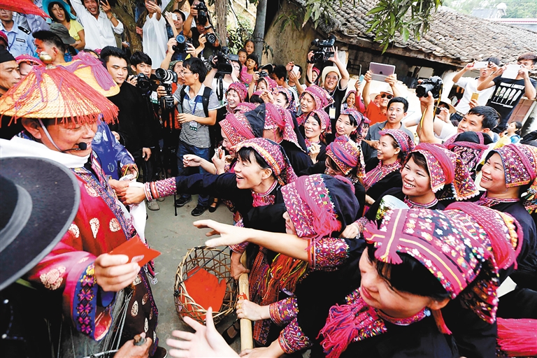 又讯 (记者易建阳 通讯员董志浩)21日上午,五指山市在水满乡举行“三月三”黎族苗族婚庆展示活动。