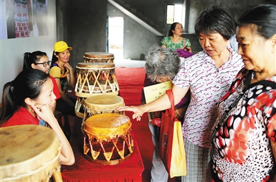 在盲人敲锣的活动中,四周围观的人群中哄笑声不绝于耳。只见戴着大头娃娃头套的参与者每每偏离路线,屡屡扑空。不少参与者摘下头套后,发现自己已经走过头,锣鼓落在身后了,不禁跟围观者一齐发出会心的笑声。