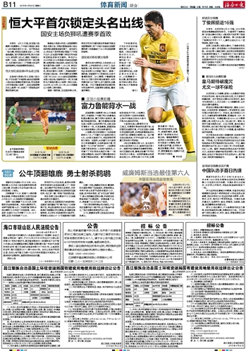 海南日报 体育新闻综合 019 2015-04-221 2015年04月22日 星期三