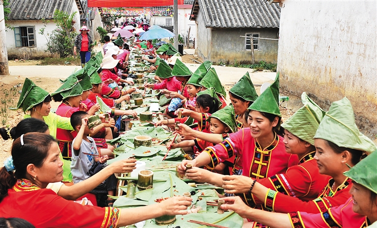 台湾少数民族参访团一行50余人今天还深入昌江石碌镇山竹沟村、片石村走访考察,与当地黎族群众共度“三月三”佳节。