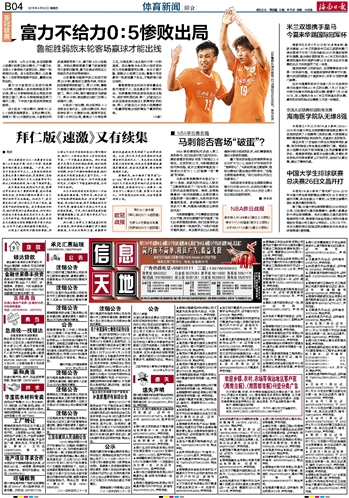 海南日报 体育新闻综合 016 2015-04-231 2015年04月23日 星期四