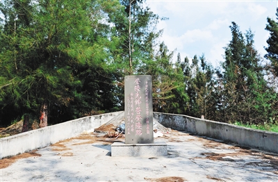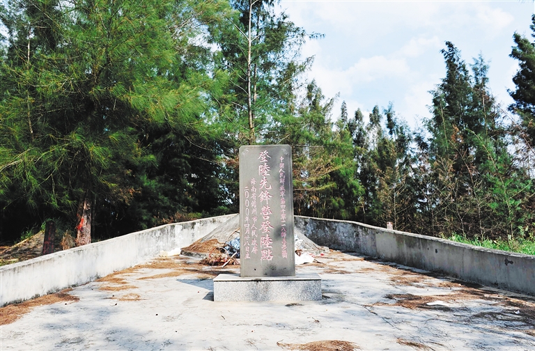 在白马井镇超头海滩,一片苍松掩映下,立着两块石碑:前面一块的正面,镌刻着“中国人民解放军第四十军一一八师三五二团登陆先锋营登陆点”字样;后面一块则是“傅世俊烈士之墓”,登陆先锋营的排长。