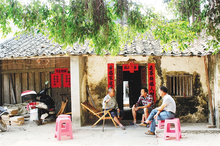 超头市村,暗灰色的瓦片上覆盖着扭成丝状的落叶,深褐色的墙壁上粘连着干枯的苔藓,古铜色的木门上被风雨剥蚀出粗糙的坑洼。这是一幢一层三间的乡下老屋,位于儋州市白马井镇寨基村。“这房子有100多年了,我住在这里也有四五十年了。”今天,老屋主人陈应中告诉记者。