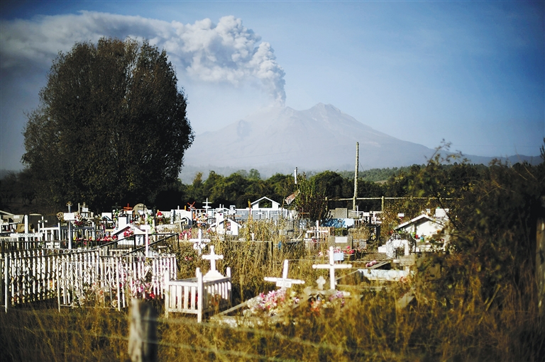这是4月24日在智利恩塞纳达镇拍摄的卡尔布科火山喷发时的照片。 智利中南部边境地区的卡尔布科火山22日突然喷发,智利政府随后宣布火山所在区域进入紧急状态,警方对火山周边20公里内居民进行紧急撤离,目前撤离人口超过4000人,有1人失踪。 新华社/路透