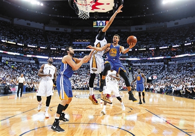 北京时间4月26日,在NBA季后赛首轮系列赛中,勇士队以109:98击败鹈鹕队,以4:0横扫对手,成为第一支晋级次轮的球队。另外三场比赛,灰熊以115:109战胜开拓者,拿到赛点;篮网主场以91:83战胜老鹰,将总比分扳成1:2;雄鹿主场92:90击败公牛,将总比分扳为1:3。图为勇士队球员库里(右)在比赛中上篮。新华社发