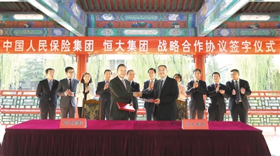 据了解,中国人民保险集团与恒大集团约定将基于各自的行业优势与资源,在商业保险、养老产业、健康管理、互联网资源共享和投融资等方面开展多层次战略合作,携手实现共赢发展。中国人保主要业务包括财产保险、人寿保险、健康保险、资产管理、保险经纪以及信托、基金等领域;恒大是集民生住宅、文化旅游、快消、健康及体育为一体的大型企业集团,双方产业高度契合,合作空间巨大,将实现战略互补,并促进市场和行业全面整合发展。