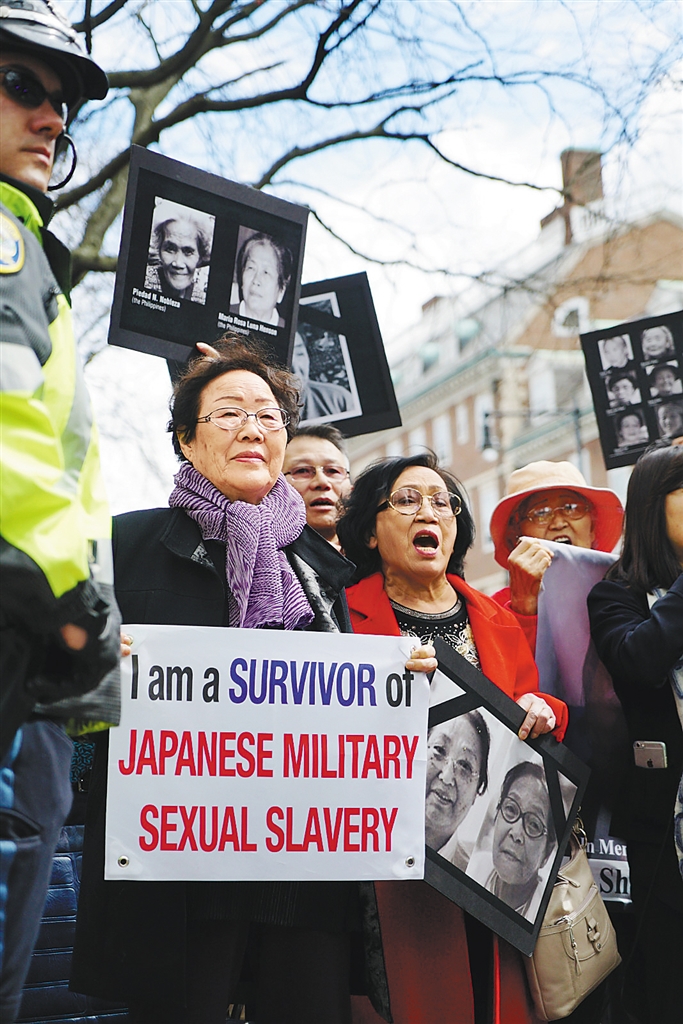 曾被日军掳做“慰安妇”、现年87岁的韩国二战幸存者李容洙在抗议现场对记者表示,安倍公然否认日本军队在二战期间犯下的暴行,她作为幸存的历史见证者,强烈要求安倍停止谎言、正视历史。