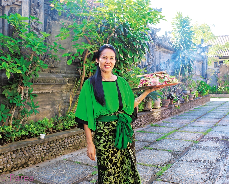 白天一到,庭院终于露出它全部的面目,清新优雅,美不胜收。这是热带园林的样子,而又带了几分江南园林的神韵。三步一景致,五步一回转。坐在此间吃早餐,让人心旷神怡。在园中闲散地逛逛,看着身着长裙的女子,虔诚的向神献花焚香祈祷;在门前的地板上坐着晒会太阳,再看两眼在藤椅上闭目养神的黑猫。个中惬意,欲辩忘言。