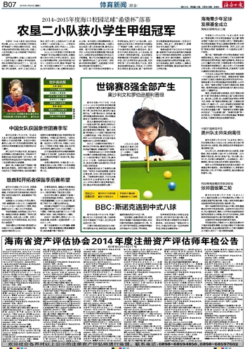 海南日报 体育新闻综合 015 2015-04-291 2015年04月29日 星期三
