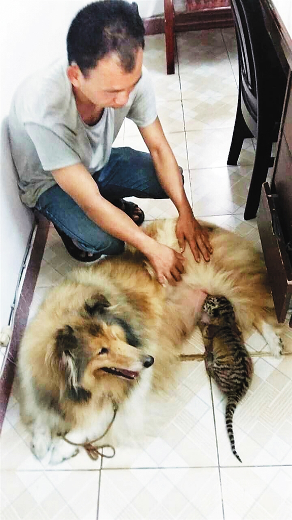 今天下午3时许,海口热心市民杨先生送来一只刚产仔不久的牧羊犬,及时让小老虎吃上了第一餐。但由于这只狗妈妈哺乳期已过去了好几天,奶水并不多,只能暂解燃眉之急。陈群表示,希望热心市民能及时提供一只体型较大、性格温顺、在哺乳期之内的狗妈妈,充当小老虎的奶妈,让这只小老虎茁壮成长。