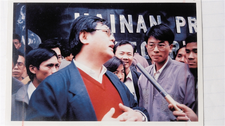 这是拍摄于1993年3月份的照片。图中主角就是当年上海滩大名鼎鼎的杨百万(真名:杨怀定)。已经全部清仓的他,趁着海南一家证券公司的邀请顺道到海南走走。由于早期靠着合法倒买倒卖国库券,以及参与证券市场的炒作,很快从一个收入紧巴巴的下岗工人,成为当时罕见的“土豪 ”而闻名。当天,他的出现,很快就被当场的人发现而即刻围了起来问长问短。杨先生人也比较豪爽,平易近人,有问必答,其受欢迎程度从照片中可见一斑。在海南的日子里,他还到海南证券公司位于珠江大厦的大户室与股民交流,并召开了向广大股民开放的投资报告会。由于当时,市场正不断走低,看不准后市走势,笔者利用晚上时间,到他住的地方拜访了他,就手里持有000501鄂武商股票请教了他,在他的建议下第二天便全部卖掉。过后来看,尽管当时抛的点位不太理想,但却躲过了其后数年的熊市折磨。