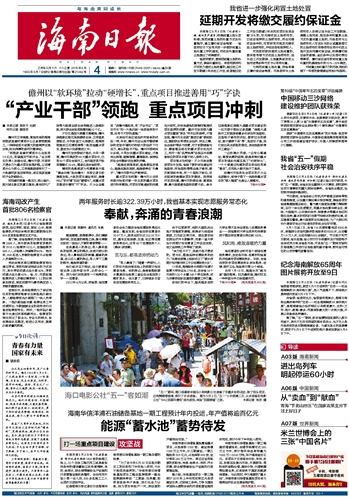 海南日报 头版 001 2015-05-041 2015年05月04日 星期一