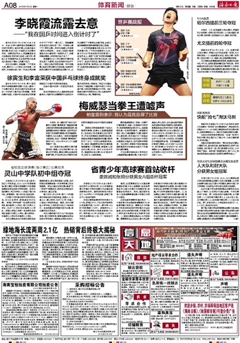 海南日报 体育新闻综合 008 2015-05-041 2015年05月04日 星期一