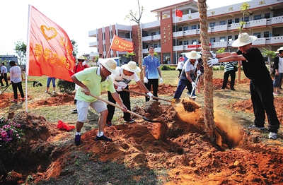 本报文城5月4日电(记者刘笑非)今天下午,海南省司法厅、住建厅、统计局、国税局、海南调查总队、戒毒管理局、海南日报报业集团等7家省直单位联合开展“绿化灾区,服务基层”活动(见左图,本报记者张杰摄),赴文昌市翁田镇明月小学增添新绿、科普知识。