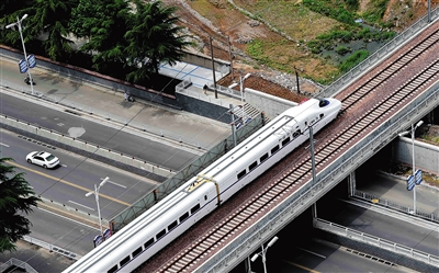 5月4日,一列动车组列车穿越郑焦铁路途间的焦作城区。当日,郑(州)焦(作)铁路经过近一个月的联调联试后,正式进入开通运营前的“高速铁路运行试验”阶段,计划试验速度为200km/h。 郑焦铁路是中原城市群区域一体化发展的重要基础设施,对促进中部崛起战略实施、完善区域综合交通网络、推动沿线城市化进程等都具有积极作用。 新华社记者 李安 摄