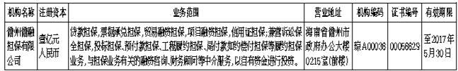 根据有关规定,我厅于2015年3月2日换发了如下《融资性担保机构经营许可证》: