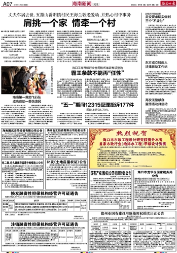 海南日报 海南新闻民生 007 2015-05-061 2015年05月06日 星期三