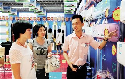 记者在海口市家电卖场最为集中的新华南路段走访发现,众多空调专柜均打出了“节能牌”,并在每一台空调的能效标识上,都详细标明了节能级别、全年能源消耗效率、额定制冷量、额定制热量等数据。