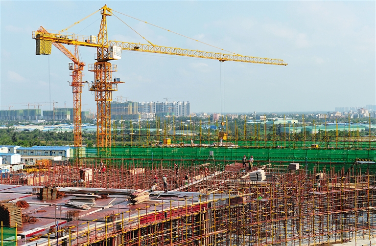 在喜盈门项目工地上,像符策刚一样忙的建设者非常多,因为要赶在明年5月28日开业,也就是说要在两年时间里完成正常需要五六年才能完成的工程进度,不管是项目业主还是承建方,大家都使出了“全副武功”赶工期。攻坚克难、千方百计成为这个项目的代名词。